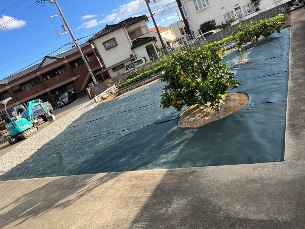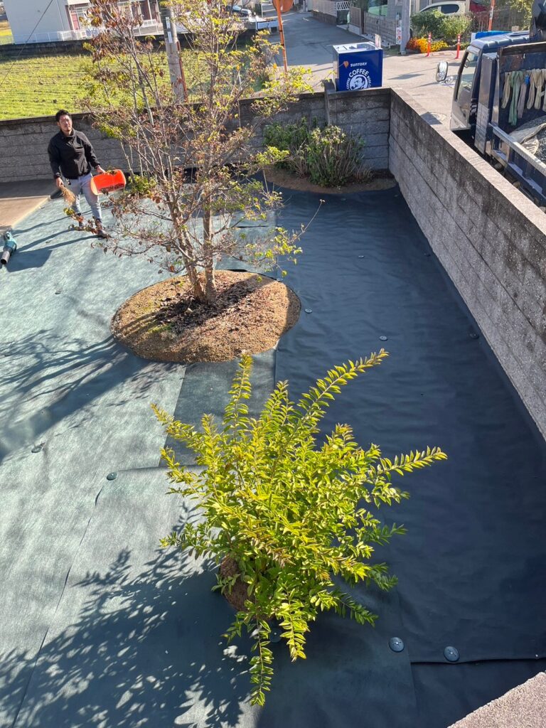 兵庫県姫路市にて、お庭の雑草対策として防草シートの敷設工事を行いました。