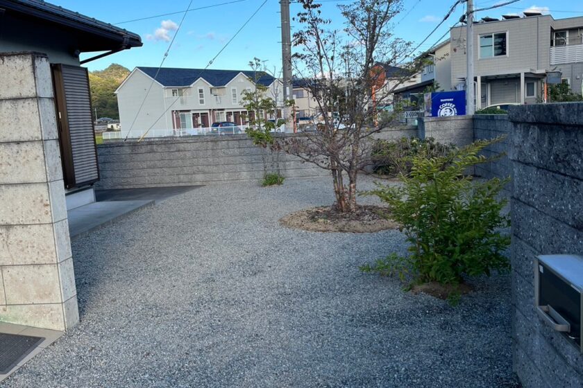 お庭の管理がぐっと楽になります。施工後は人工芝や砂利など、