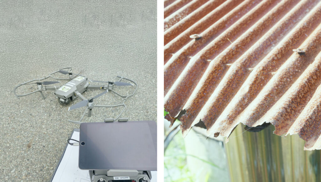 「雨漏りしている気がする」「屋根が壊れているかもしれない」といったお悩みもドローンを使えば安全かつ短時間で状態確認することができます。