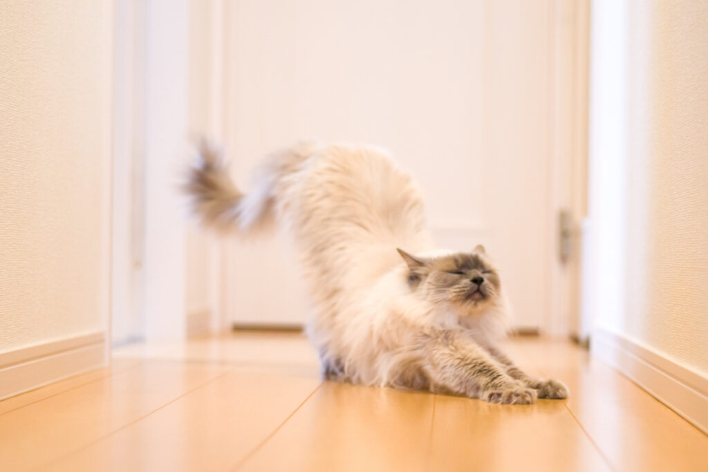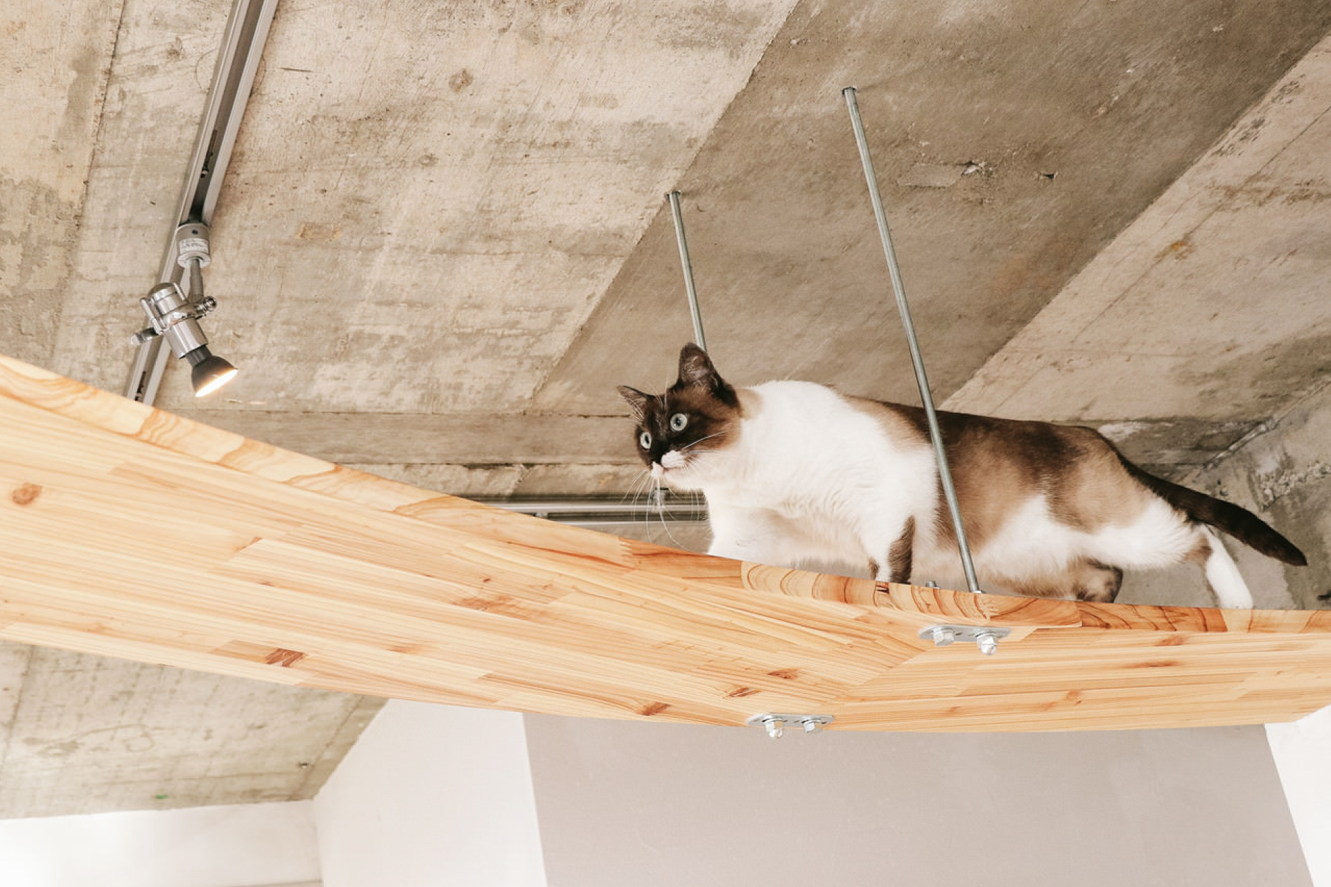猫は高いところが好きな子が多く、壁面や天井付近にキャットウォークを設置することで、上下運動が増え、運動不足やストレスの軽減に役立ちます。